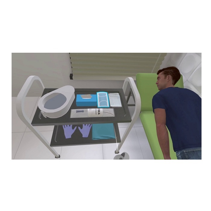 Виртуальный (VR) тренажер «Сестринское дело» позволяет пользователям погрузиться в реалистичную среду клиники и потренироваться в выполнении медицинских процедур по чек-листам, написанным в соответствии с государственными стандартами. Тренажер включает в себя 6 интерактивных сценариев для прохождения обучения по правильному выполнению медицинских процедур и аттестации для оценки полученных навыков в виртуальной реальности.